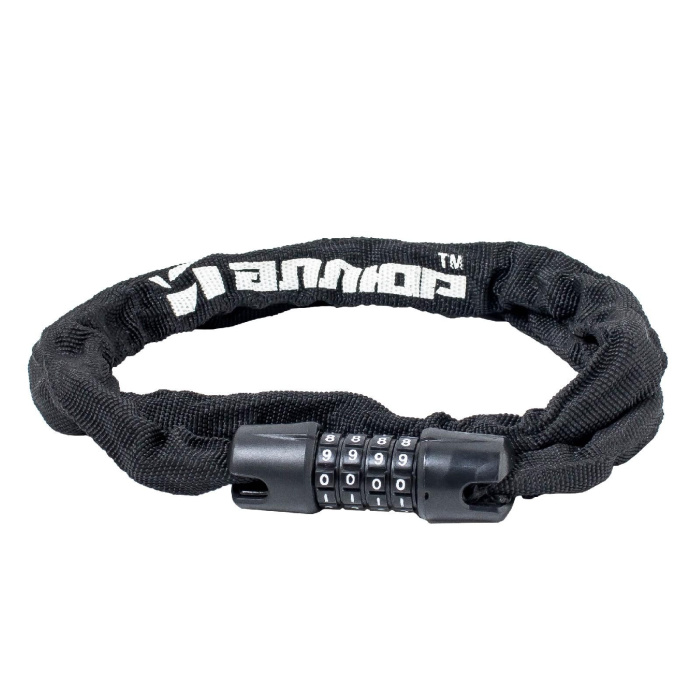 Замок навесной с цепью. Материал корпуса - сталь, покрыта пластиком. Стальная цепь в тканевой оплетке препятствует перекусыванию замка.Длина - 900мм. Кодовый механизм секрета (4 ячейки/10 цифр). Предназначен для запирания дверей, ворот, а также для предотвращения хищения велосипедов, детских колясок, санок, лодочных моторов и др. предметов.