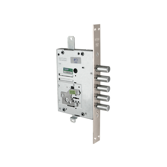 Замок врезной сувальдный 52.J525M My Key S с тремя точками запирания без защелки предназначен для левосторонних металлических дверей. Это более усовершенствованная модель: нуклео больше не выступает над поверхностью и не требует под себя «окно» в двери. Замок оснащен взаимозаменяемой нуклео, кодирование нуклео осуществляется при помощи специального ключа. Наличие на ключе системы My Key подвижных вращающихся элементов предотвращает незаконное изготовление дубликатов ключей. Копии таких ключей можно изготовить только в авторизованных центрах Mottura Club при предъявлении оригинального ключа и карточки владельца. Бэксет 64 мм. Круглые ригели диаметром 18 мм с ходом 36 мм. Ход тяг 20 мм. В комплект замка входят: 1 нуклео с 5 сувальдными ключами 60 мм в герметичной упаковке, 1 внутренняя накладка, 1 наружная накладка.